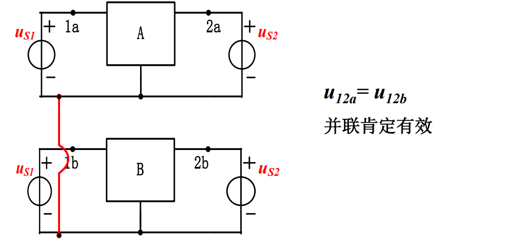 有公共接线的双口网络必满足并联有效性条件,例如两个三端网络并联必满足有效性条件。