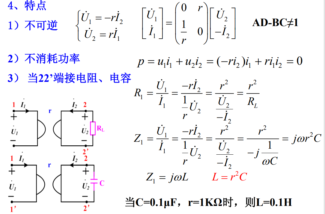 能把一个阻抗或元件参数按一定比例进行变换并改 变其符号的双口器件。